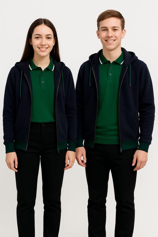 Kışlık forma; Kız ve erkek öğrenci yeşil uzun kollu ( Polo Yaka) tişört, yeşil sweatshirt ve siyah renk pantolon olacaktır.